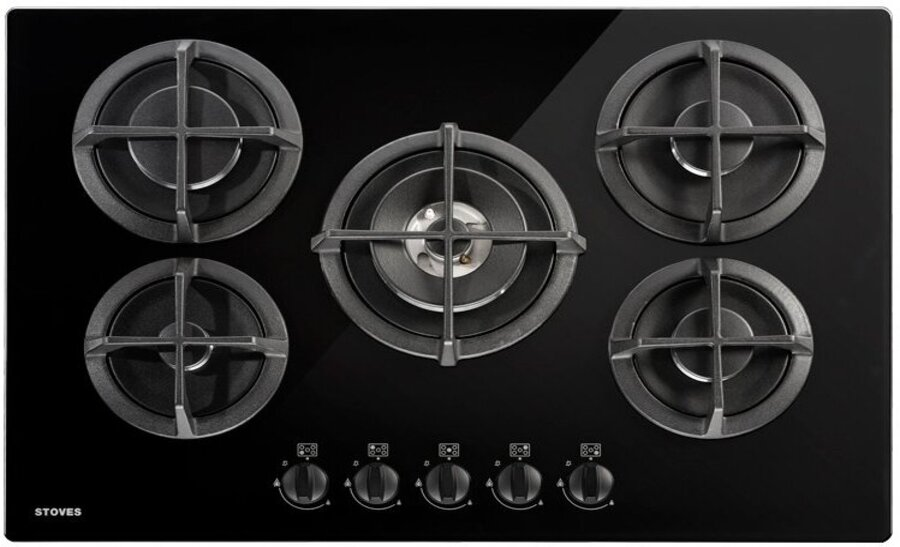 A modern toughened glass surface beneath the burners.
