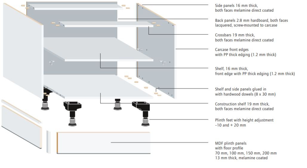 - Full 18 mm cabinet construction on sides, top and bottom in many ranges