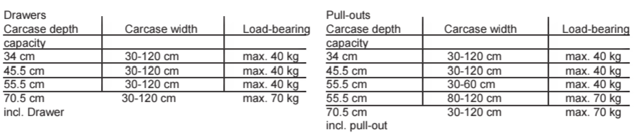 - Drawers run smoothly under heavy loads