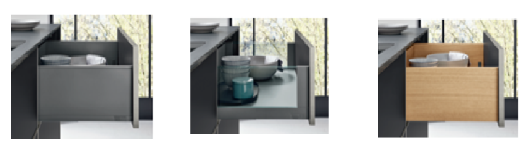 - Glass or metal sided drawers for a premium look